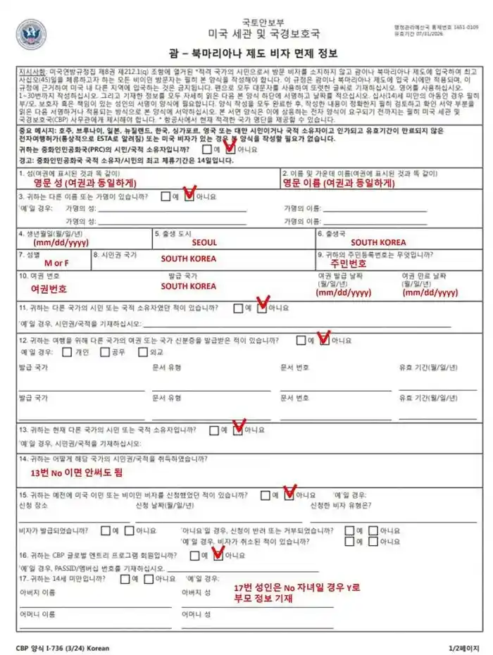 CBP Form I-736 - Guam CNMI Visa Waiver Information (Korean)