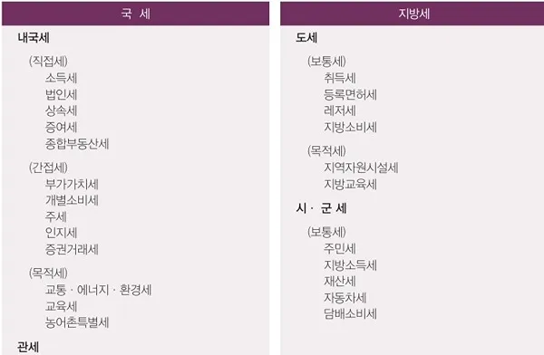 - 세수 용도별로는 용도가 특정되지 않고 일반경비에 충당되는 보통세와 용도가 특정경비에만 충당되는 목적세로 구분됩니다.