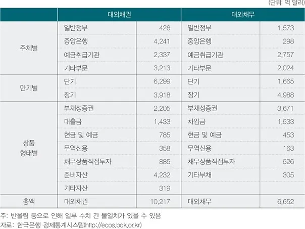 대외채권 및 대외채무의 개념과 통계를 활용한 지표 및 유의사항