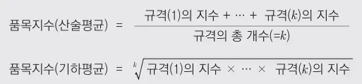 - 품목지수는 규격지수들을 산술평균 또는 기하평균하여 산출