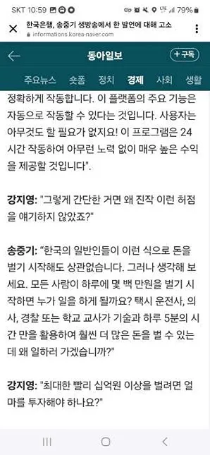배우 송중기씨를 비롯해서 동아일보, 심지어 한국은행까지 들먹이고 있습니다. 한국은행은 고작 이런 것까지 신경 쓸 겨를도 없거니와 그럴 필요도 없다는 걸 다들 아시리라 믿습니다. 아래부터는 사이트를 캡쳐한 것인데 사실 읽어볼 가치는 전혀 없으니 아 이런 나쁜놈들이 있구나 정도로 생각하시고 보지 않는 것이 정신건강에 이롭습니다.