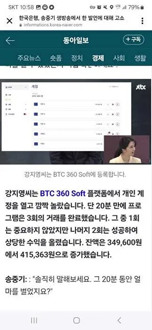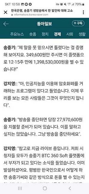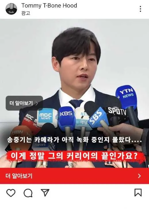 오늘은 우연히 SNS를 넘기며 보다가 배우 송중기님이 등장하는 이상한 코인 사기 광고를 봐서 혹시나 피해자가 생기지 않을까 하는 염려에 관련내용을 공유하도록 하겠습니다. 아래의 스크린 캡쳐와 같이 송중기가 방송사와의 인터뷰 중 무엇인가 실수 발언을 한 것처럼 꾸며, 클릭을 유도하고 있습니다.