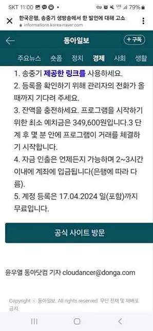 심지어 동아일보의 도메인을 자세히 보면 교묘하게 다르고, 기사 외 다른 메뉴는 클릭조차도 되지 않습니다. 하지만 똑같이 만들어서 가입 최소 금액인 36만원 정도 결제할 수도 있을꺼 같아서 노파심에 급하게 포스팅합니다.