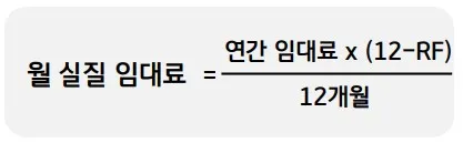 (보증금 * 보증금 운용 이율 / 12개월 + 월임대료 (1-렌트프리/12) + 월관리비 ) / (전용률)
