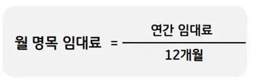 (보증금 * 보증금 운용 이율 / 12개월 + 월임대료 + 월관리비) / (전용률)
