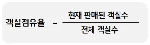 - 객실점유율 = 현재 판매된 객실수 / 전체 객실수