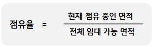 - 현재 점유 중인 면적 / 전체 임대 가능 면적