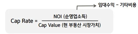 - 자본환원율, 자산의 가격 대비 순영업소득의 비율, 부동산의 소득을 가치로 전환하는 비율
