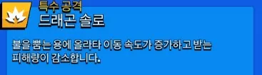 - 특수 공격인 드라곤 솔로의 압도적인 근접 및 중거리 전투력으로 최강의 근접 전투력