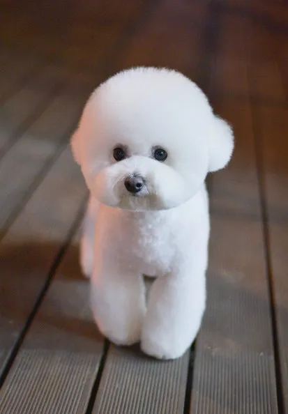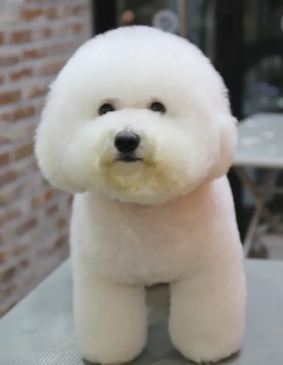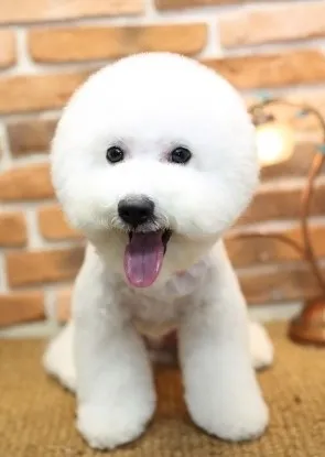 - 얼굴: 비숑프리제는 검은 눈과 작은 주둥이를 가지고 있어 밝고 행복한 표정을 자주 보입니다. 검은 코와 눈은 흰 털과 대조를 이루어 더욱 귀여운 인상을 줍니다.