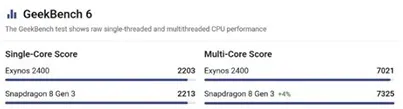 Galaxy S24 Plus와 Galaxy S24는 엑시노스 2400이 탑재된 반면, Galaxy S24 ultra의 경우 스냅드래곤을 탑재하고 있습니다. 둘 간의 성능을 간단히 비교해 보니, 5% 내외의 성능차이를 보입니다. 아주 큰 차이라고는 할 수 없을 것 같습니다.