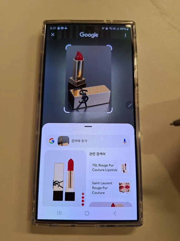 특히 사진에서 특정 대상을 S펜으로 동그라미를 칠 경우 자동으로 이미지 검색을 하여 해당 물건이 무엇인지 혹은 비슷한 상품은 무엇인지 바로 알 수 있습니다.