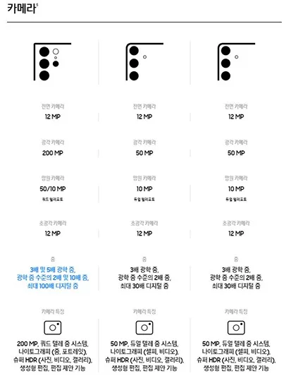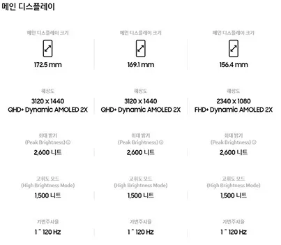 갤럭시(Galaxy) S24 Ultra / 갤럭시(Galaxy) S24 Plus / 갤럭시(Galaxy) S24 스펙 비교