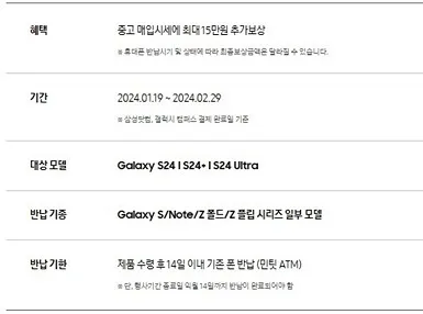 갤럭시(Galaxy) S24 구매고객 대상 중고폰 추가보상 이벤트 실제 보상금 수령후기