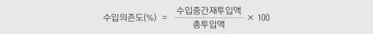 수입구조는 국내 생산활동을 위해 수입중간재에 얼마나 의존하는가를 나타내는 수입의존도와 수입상품의 구성비, 그리고 앞의 공급구조에서 살펴본 총공급에서 수입이 차지하는 비중으로 파악할 수 있습니다.