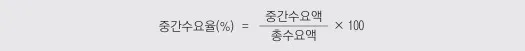 사용표를 가로로 보면 각 상품별 사용내역을 알 수 있습니다. 즉, 산업에서 중간재로 사용한 중간수요와 최종재로 판매된 최종수요로 구분되는데 이들을 각각 총수요액으로 나누면 중간수요율과 최종수요율이 구해집니다. 총수요에서 중간수요를 제외한 나머지가 최종수요이며 이는 소비, 투자, 수출로 구성됩니다.