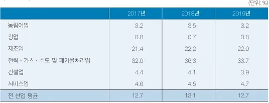 - 건설업과 전력·가스·수도 및 폐기물처리업이 각각 6.1%와 2.8%