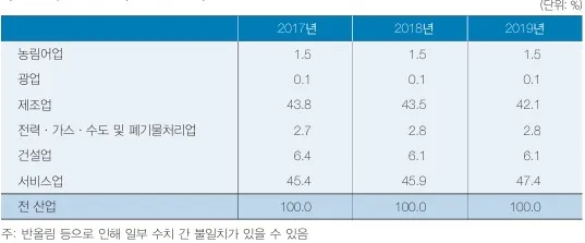 - 2018년에 비해 서비스업 비중이 높아진 반면 제조업 비중은 낮아졌음