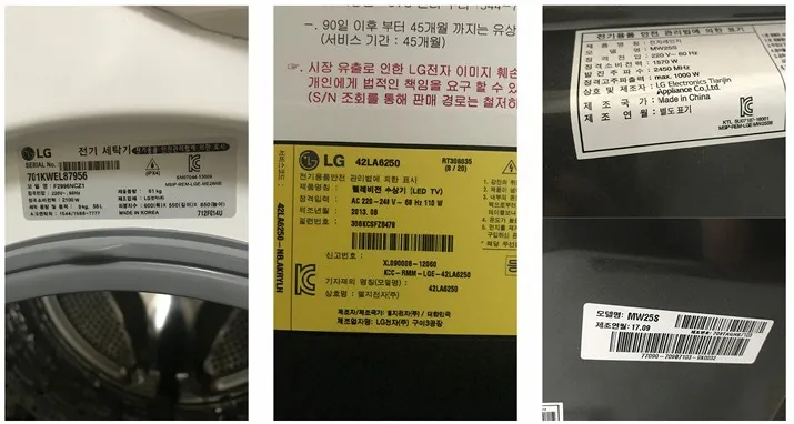 - 제품제원사항: 가전 뒷면 사진촬영 제출