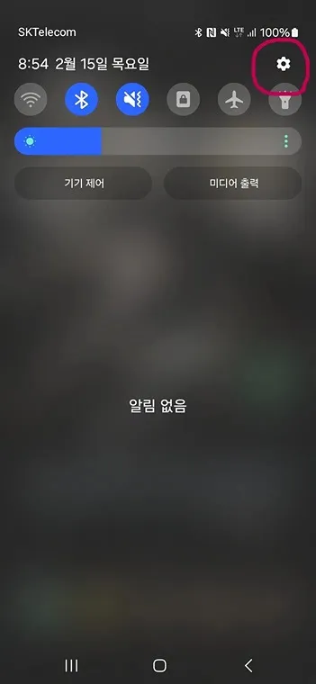 스마트폰의 오른쪽 상단의 톱니바퀴 모양의 설정에 들어갑니다.