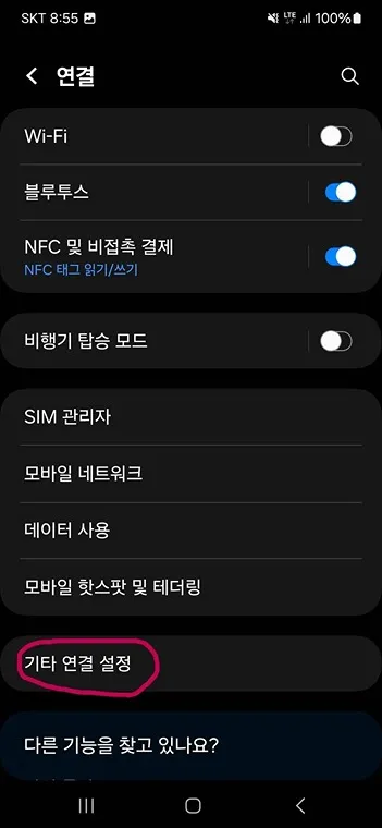다음으로 기타 연결 설정에 들어갑니다.
