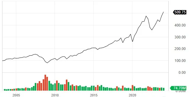 - 종목개요 : SPY는 세계에서 가장 크고 가장 많이 거래되는 ETF 중 하나로 미국 S&P500 Index를 추종하는 대표적인 종목입니다. SPY는 미국 대형주에 장기 투자하고자 하는 투자자들에게 가정 적합한 ETF입니다. 또한 전 세계 ETF시장에서 가장 거래량이 많은 유동성이 아주 풍부한 종목입니다.