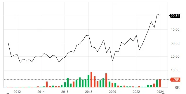 - 종목개요 : EGPT는 이집트 경제에 투자하는 유일한 종목입니다. 이집트에 설립되거나 관련 자산의 최소 50%를 이집트에 보유한 회사로 구성된 투자 유니버스의 90%를 기반으로 생성된 지수를 추종하는 ETF입니다. 지수에는 약 25개의 기업으로 구성되어 있으며 개별적으로 지수에서 8%의 가중치로 제한하고 있습니다. 정치적 혼란으로 인해 2011년 봄 카이로 거래소가 문을 닫았고, VanEck는 잠시 운용을 중단해야 했지만, 다시 정상화되어 운용되고 있습니다. 신흥국의 지수를 추종하는 다른 ETF와 마찬가지로 매우 큰 변동성과 부족한 유동성을 반드시 고려하고 투자해야 하는 종목입니다.