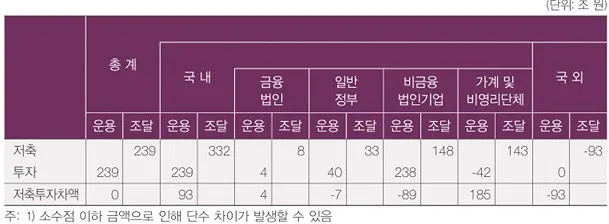 위 두 표를 토대로 경제주체별 자금 조달 운용 상황을 살펴보도록 하겠습니다.
