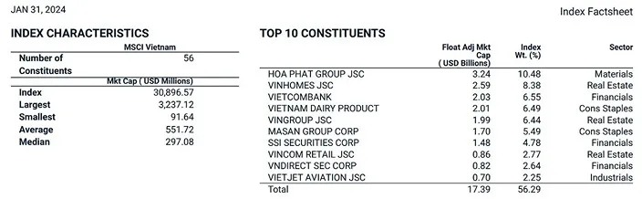 MSCI Vietnam Index의 구성 종목과 특징