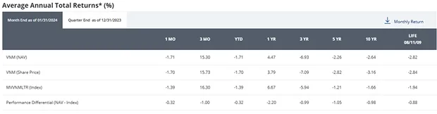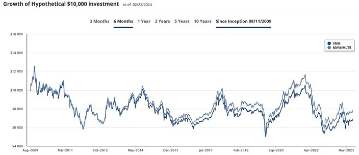 VanEck Vietnam ETF(VNM)의 과거 추이 및 기간별 성과(2024-02-23기준)