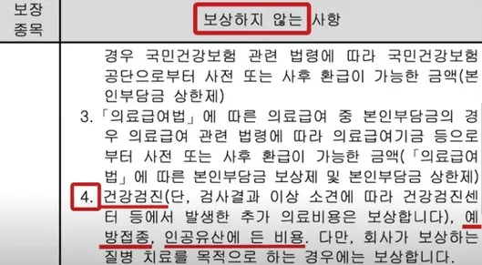 건강검진은 검사비가 보상되지 않음