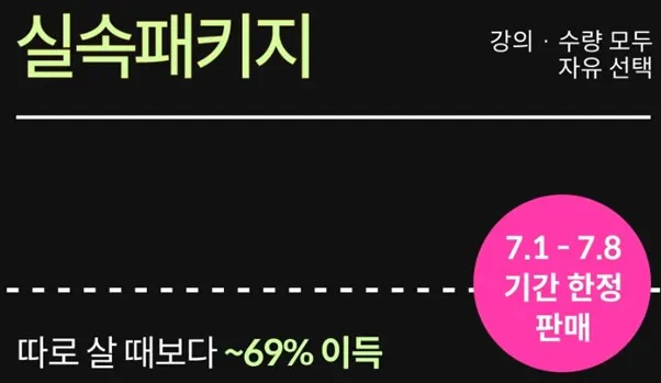 - 혜택1 : 강의도 수량도 내맘대로 실속패키지 균일 특가, 실속패키지 BIG 3~7 최대 69%까지 할인