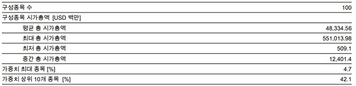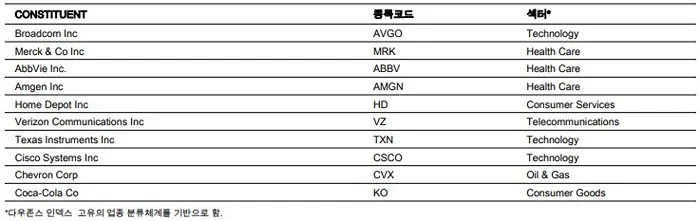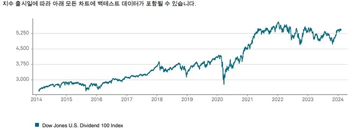 배당률이 높은 기업을 중심으로 지수 구성을 한 Dow Jones U.S. Dividend 100 Price Return Index인 만큼 이를 추종하는 ETF도 투자시에 반드시 고려할 사항입니다.