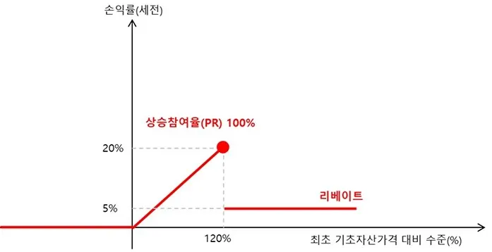기초자산의 가격이 상승 혹을 하락할 때 가격 변동의 비율에 대한 수익의 비율입니다. 기초자산 가격이 상승할 때 수익이 발생하는 경우를 상승참여율, 기초자산 가격이 하락할 때 수익에 참여하는 비율을 하락참여율이라고 합니다.
