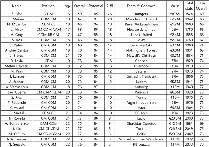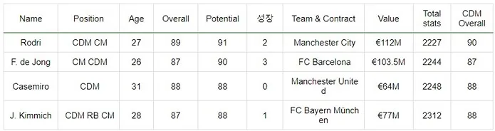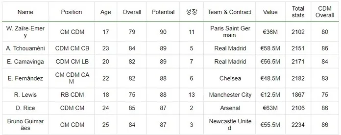 성장을 시키며 즐길 수 있는 TOP CDM 선수