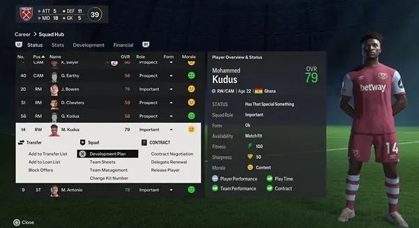 또한 선수를 새로운 포지션으로 훈련할 수 있으며, 선수를 더 적합한 포지션으로 이동시키면 등급이 올라갑니다. 그리고 마지막으로 중요한 요소는 선수의 나이입니다. 선수가 너무 늙기 시작하면 성장이 멈추고 더 이상 발전할 수 없습니다. 따라서 선수를 성장시키려면 25세 미만의 선수에게 집중하는 것이 가장 좋으며, 유스 아카데미를 통해 영입하는 모든 선수에게 아주 잘 적용되는 기능입니다.