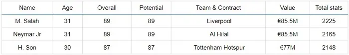 FC24 커리어모드의 윙어(RW, LW) Top 6에 대해 알아보겠습니다. 커리어 모드는 선수의 나이에 따라 오버롤이 변화하므로, 나이가 너무 많아 성장 여력이 없는 선수는 제외하였습니다. 이처럼 현존 최강 윙어이지만 커리어모드에서는 나이로 인해 육성의 재미가 떨어지는 선수는 네이마르, 살라, 손흥민이 있습니다. 그러나 나이가 있는 만큼 이적료도 합리적인 수준이어서 은퇴까지 사용하셔도 무방할 정도의 성능을 보여주는 선수입니다. 그러나 선수를 육성하는 재미를 가지고 있는 커리어모드에서는 거쳐 가는 선수로 생각하기에 간략히 소개만 하도록 하겠습니다.