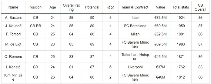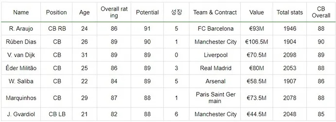 FC24 커리어모드 CB 선수 추천(TOP, 월클, 본좌, 유망주)