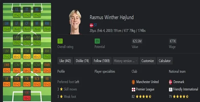 지난 시즌 36골을 넣으며 명실상부 최고 스트라이커임을 증명했습니다. 194cm의 장신임에도 불구하고 빠르고, 민첩하고, 제공권과 잔발까지 완벽한 스트라이커입니다. 특성은 Acrobatic +, Power Header, Quick Step을 보유하고 있습니다.