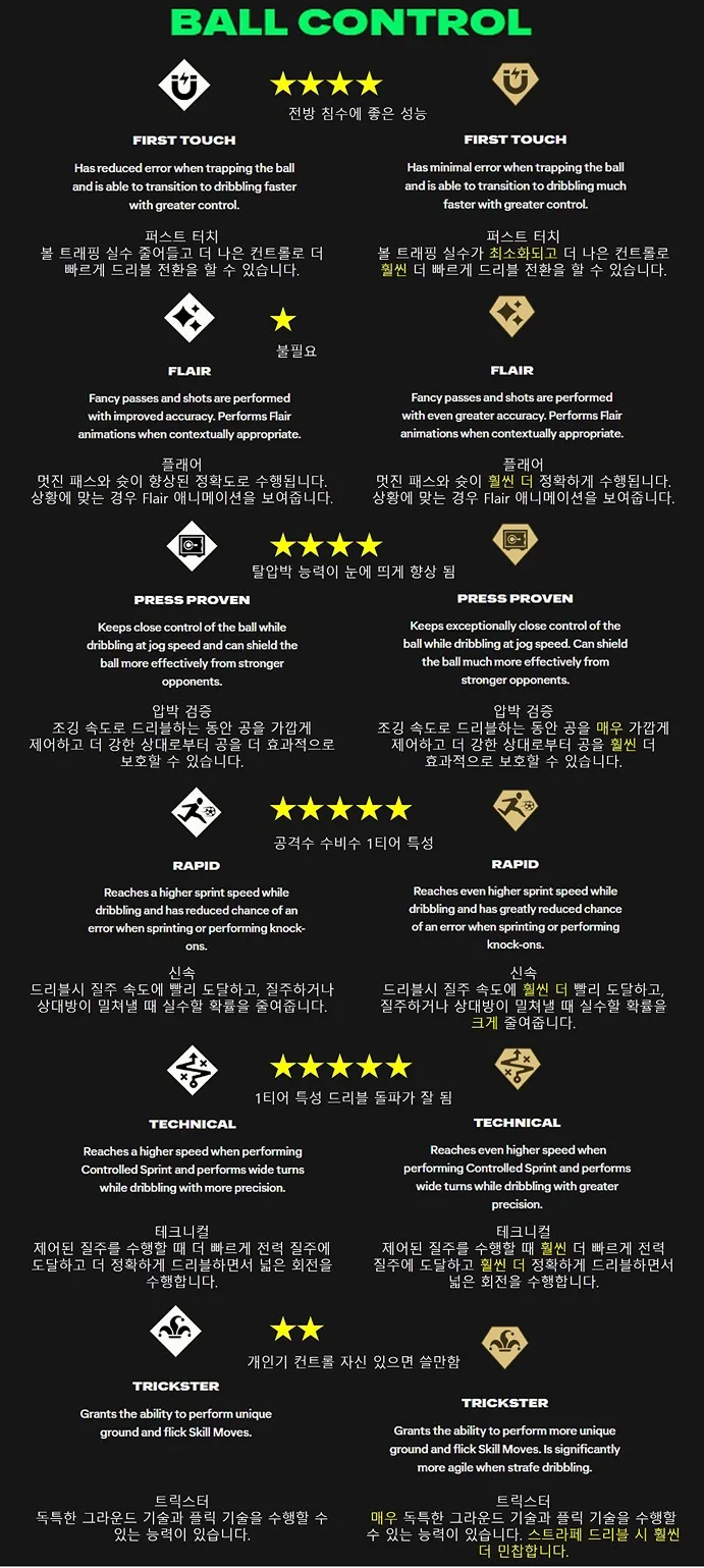 이상으로 FC24 플레이스타일(특성, 스킬)의 총 정리를 마치겠습니다.
