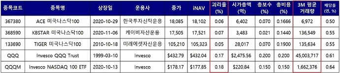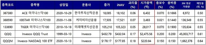 나스닥 100 지수를 추종하는 ETF 비교