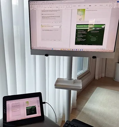 최종 완료된 모습입니다. 화면의 위치는 본인에 맞게 사용하시면 됩니다. 듀얼 모니터로 사용되는 태블릿 PC의 해상도가 살짝 떨어지기는 하지만, 간단하게 옆에 참고 화면을 띄워놓고 사용하기에 안성맞춤입니다.심지어 듀얼 모니터로 사용되는 화면은 마우스가 아닌 터치로 컨트롤을 할 수 있습니다.